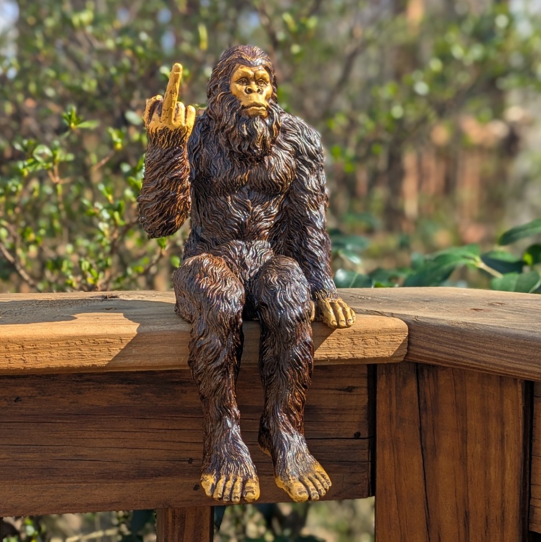 Bigfoot The Rude ‘Flipping The Bird’ Sasquatch Yeti Statue/Figurine Indoor/Outdoor Sculpture for Patio, Deck, Home, Office 10 in H Shelf Sitter Figurine (