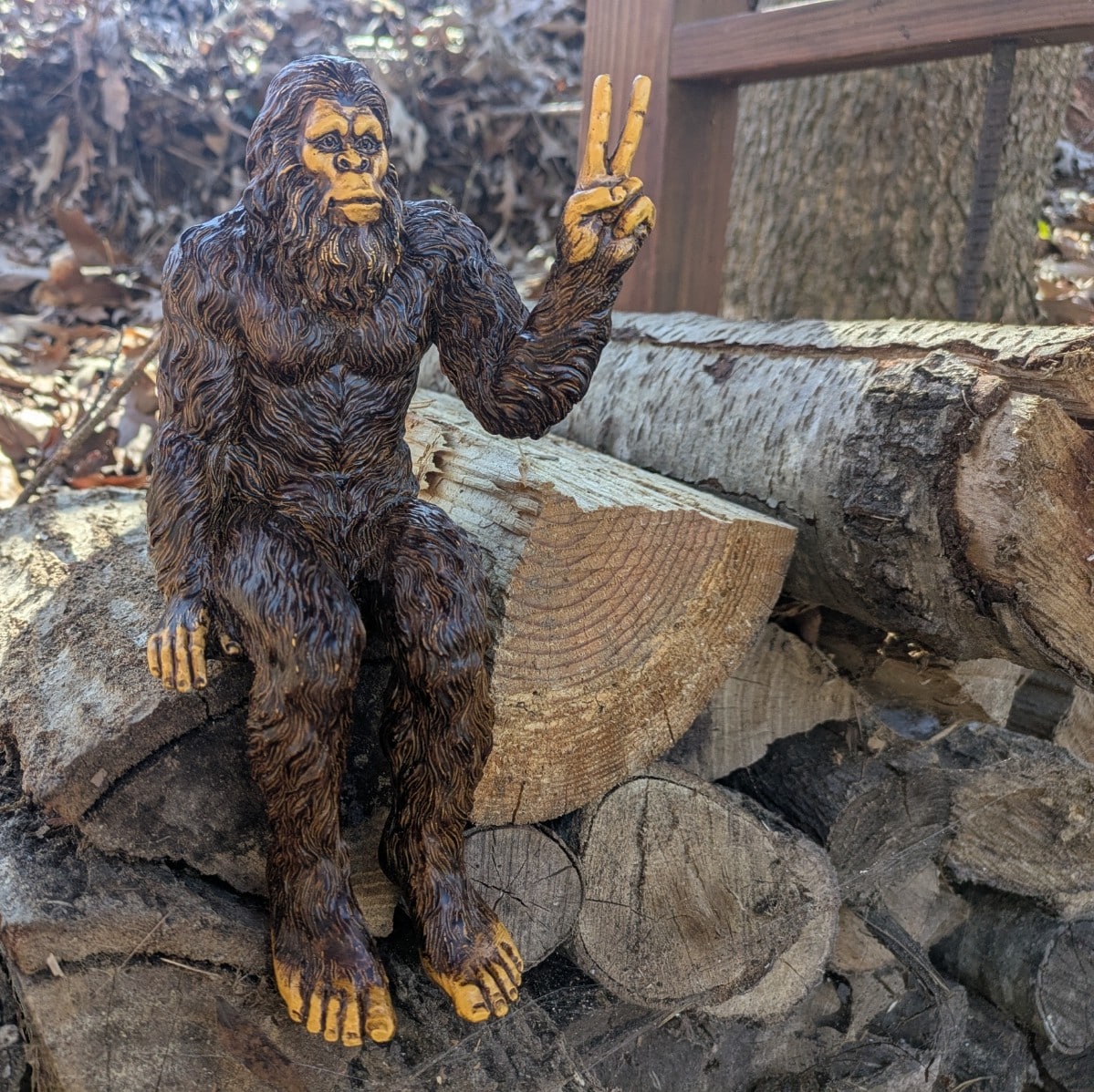 Christmas Bigfoot Peace Sign Decorative Sasquatch Yeti Statue/Figurine Indoor/Outdoor Sculpture for Home, Office, Patio, Deck 10 in H Shelf Sitter Figurine – Natutal