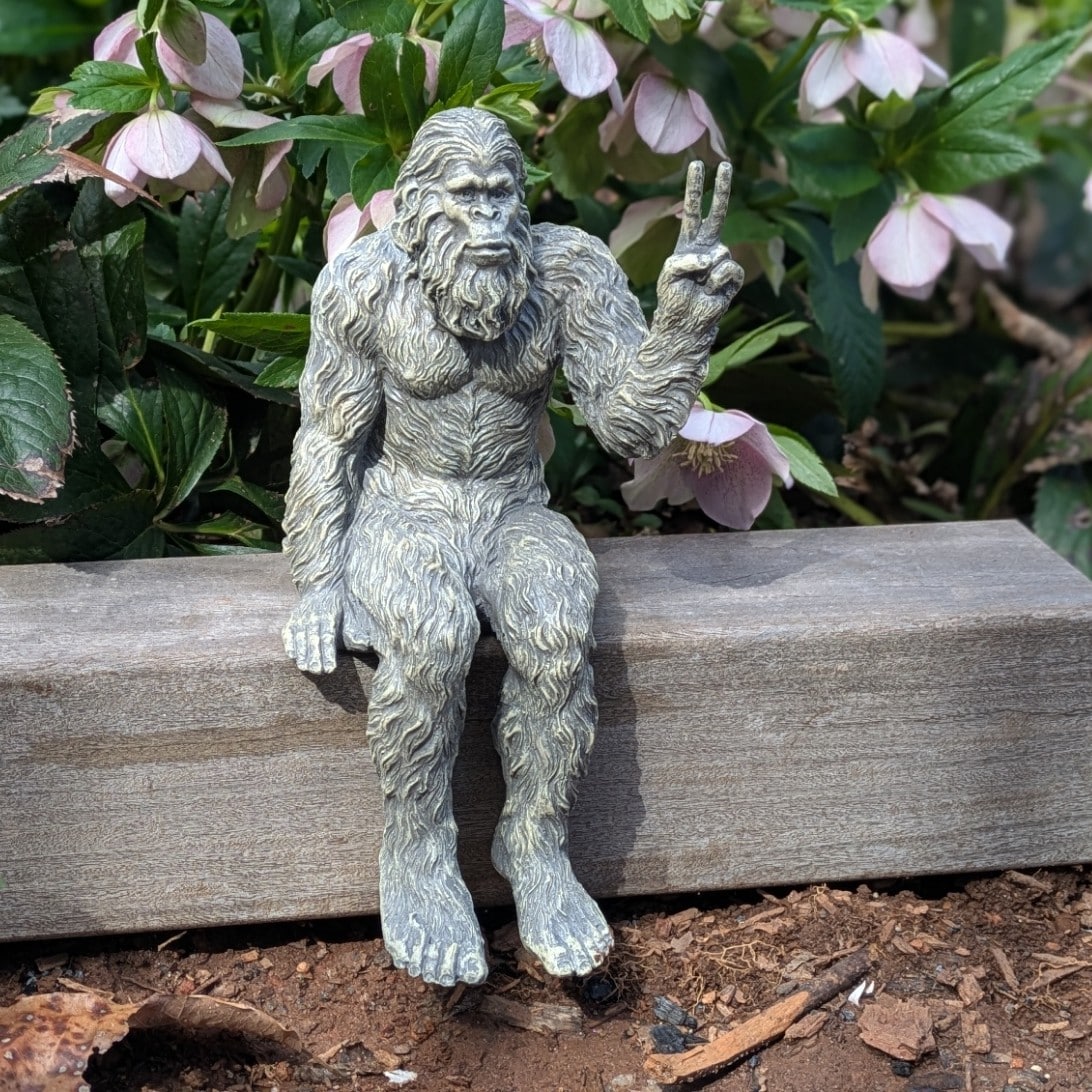 Bigfoot Peace Sign Decorative Sasquatch Yeti Statue/Figurine Indoor/Outdoor Sculpture for Patio, Deck, Home, Office 10 in H Shelf Sitter Figurine – Stone Gray