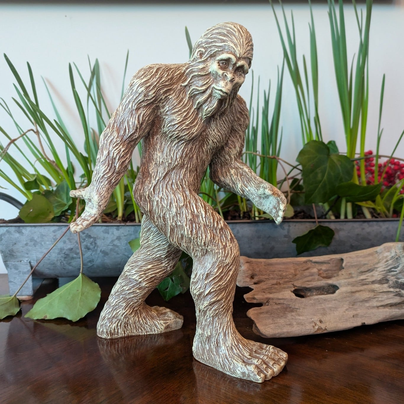 - CLASSIC STANDING POSE: Captures Bigfoot in iconic mid-stride walking position with bent knees and outstretched arms, creating dynamic visual interest from any viewing angle