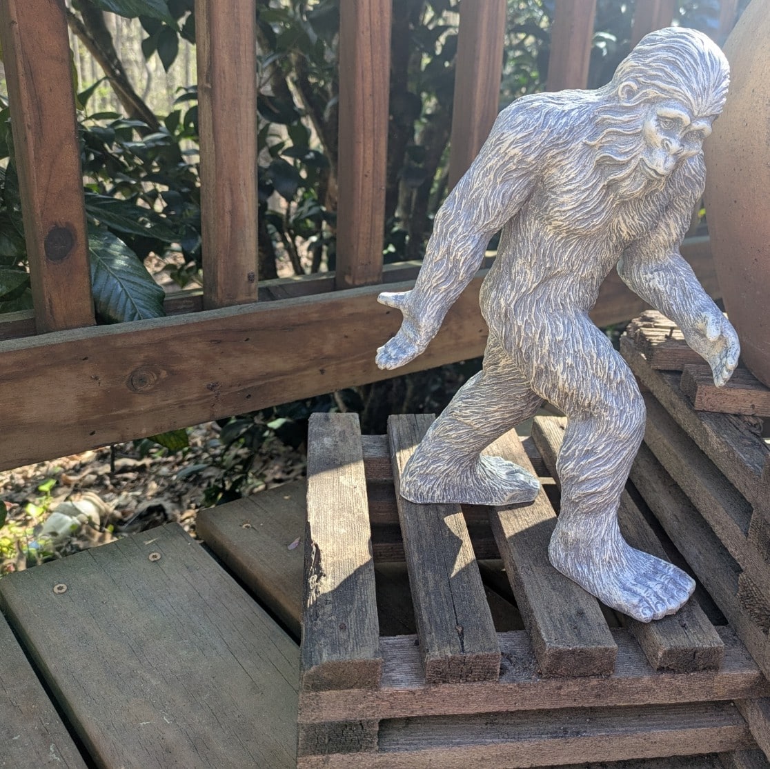 - CLASSIC STANDING POSE: Captures Bigfoot in iconic mid-stride walking position with bent knees and outstretched arms, creating dynamic visual interest from any viewing angle