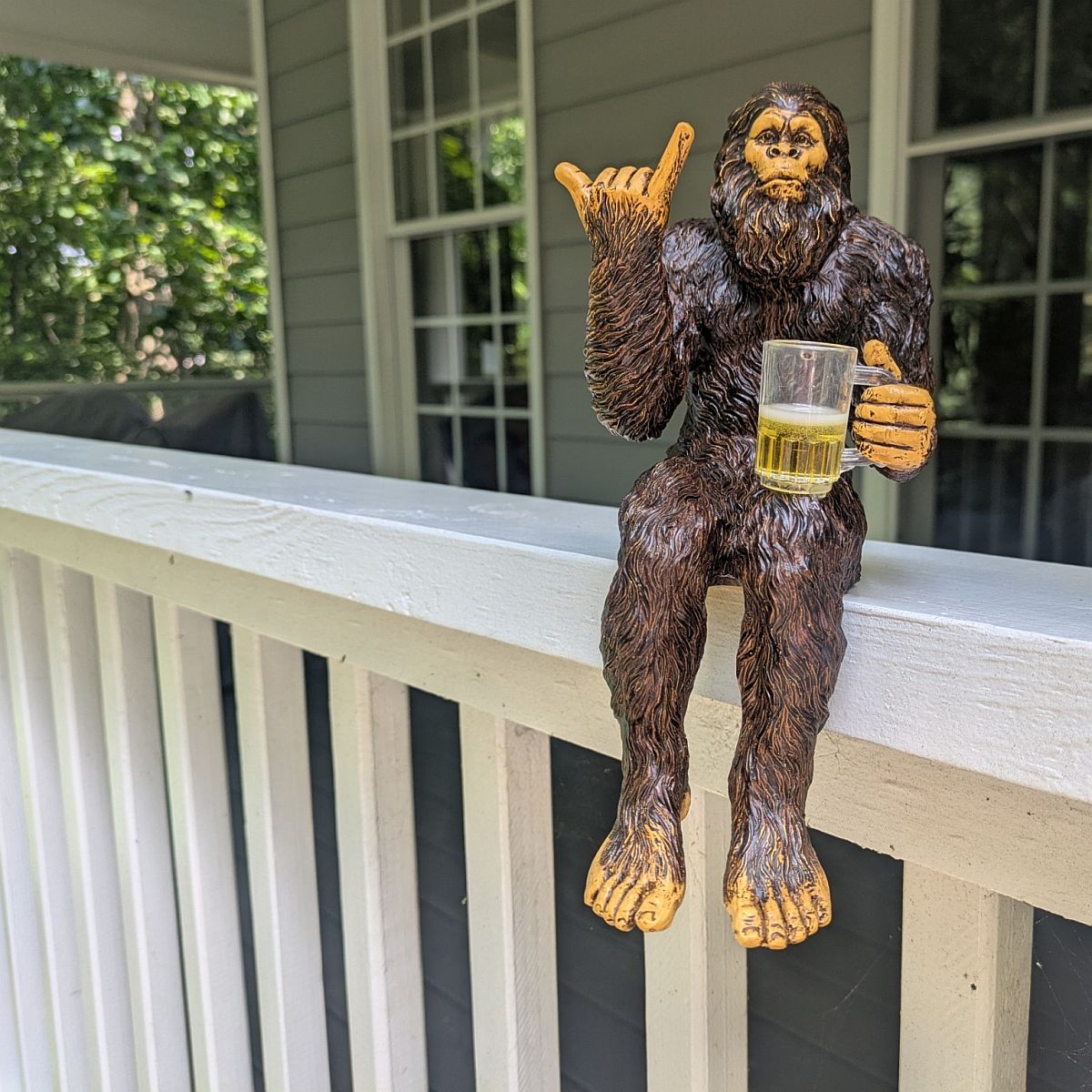 Bigfoot Party Bigfoot Hang Loose Beer Drinking Sasquatch Yeti Statue/Figurine Indoor/Outdoor Sculpture for Patio, Deck, Home, Office 10 in H Shelf Sitter Figurine – Natural