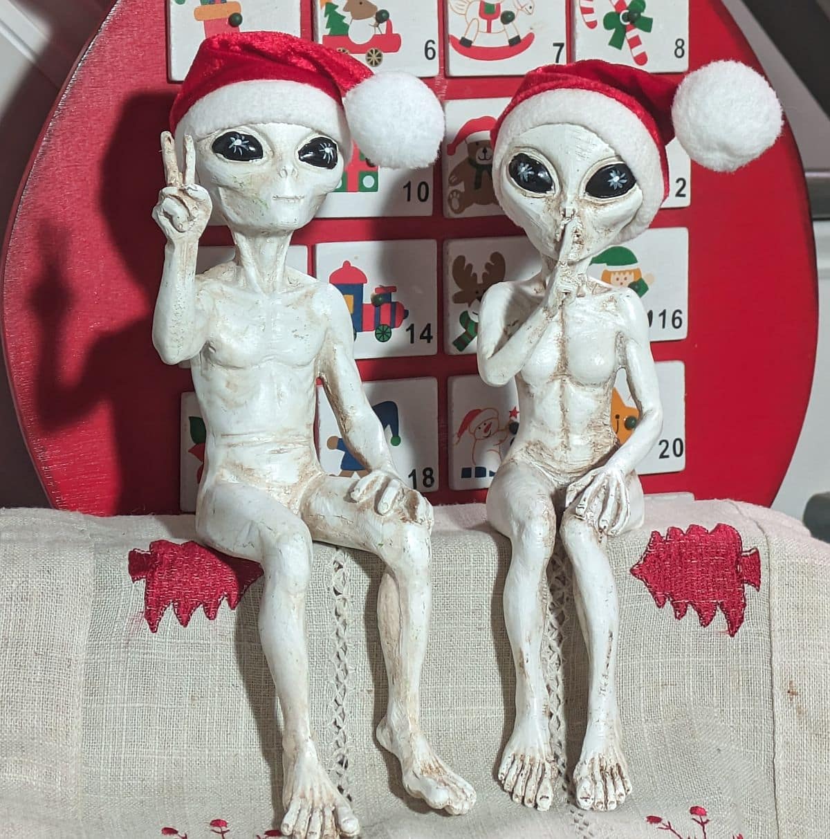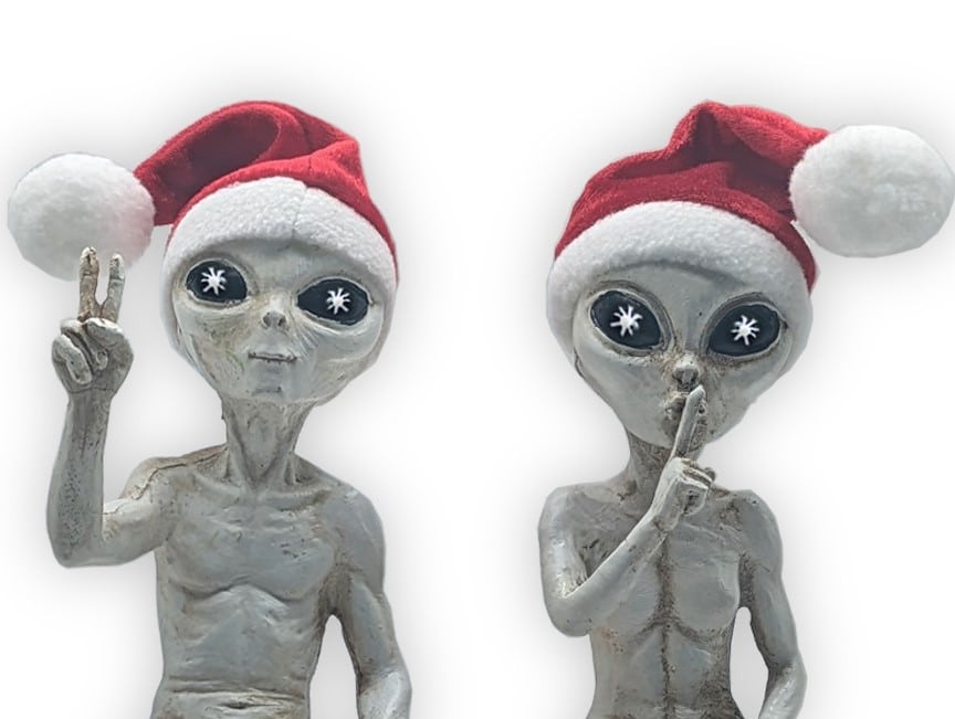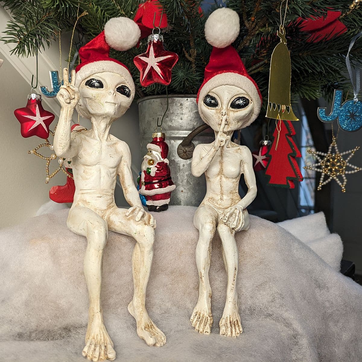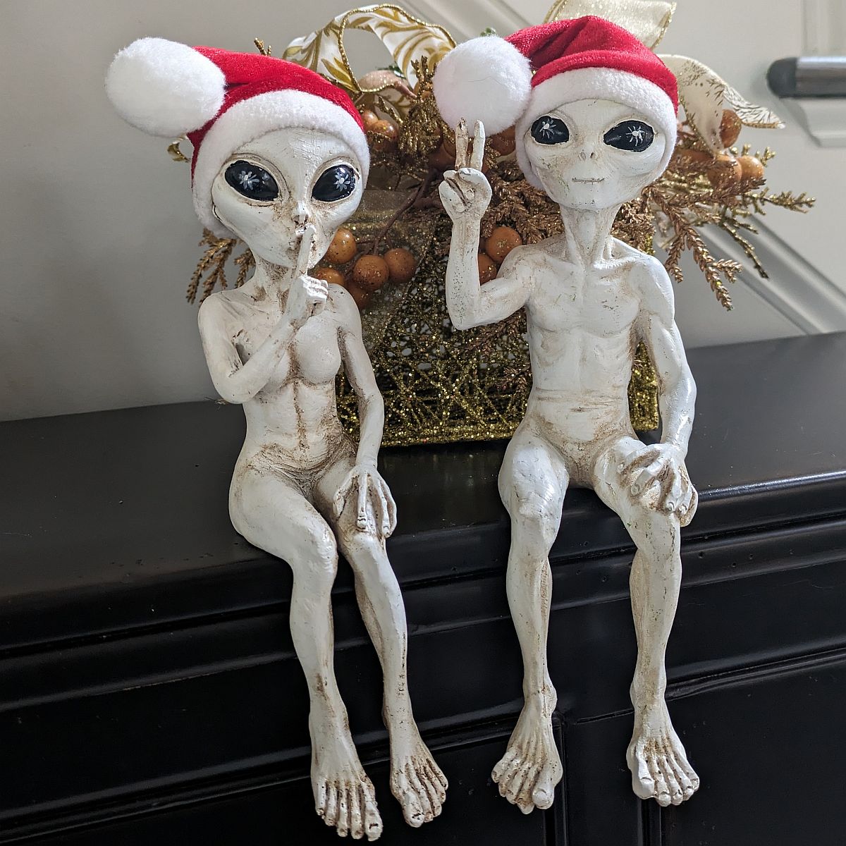 - Looking for a great and unique Christmas gift? A very unexpected Holiday Decoration which will be the talk of the next get-together? Let seasonally decorated Alien Figurines bring ‘Peace and Quiet’ into your ‘space’ during the Holiday season with these whimsical 10” Alien Ledge Loungers