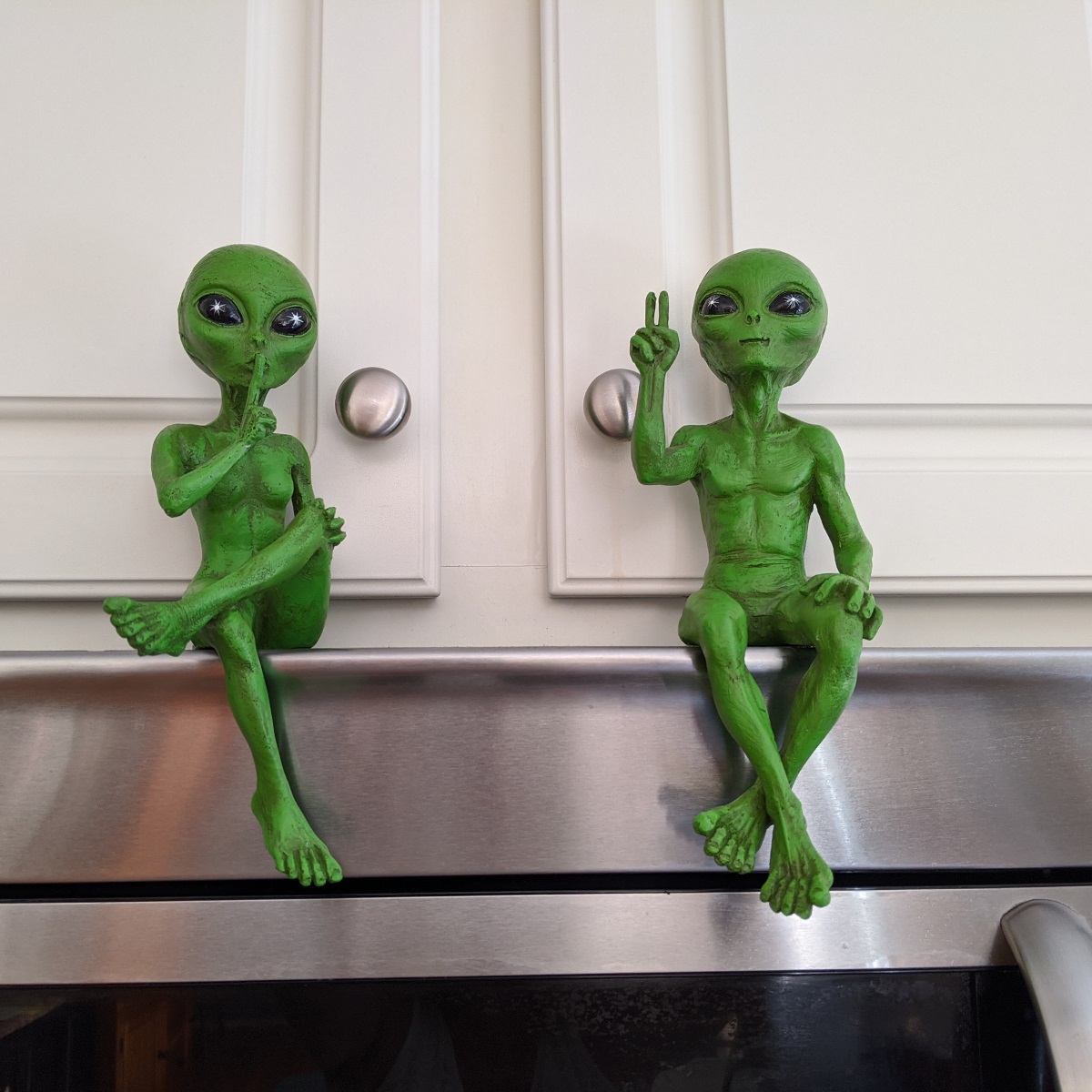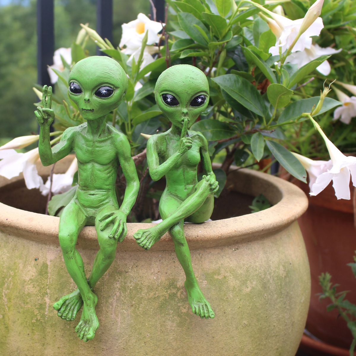 My husband’s always been fascinated with the thought of aliens, so this was the perfect gift. I thought he’d want to put them in the garden, but instead he has them in our living room. You never know where they’ll show up next. They’re more solid and sturdy than I expected.