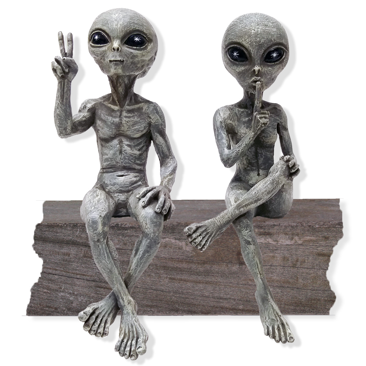 Alien Invasion™ – Ledge Loungers “Peace & Quiet” 10″ H Statues Set – Alien Gray
