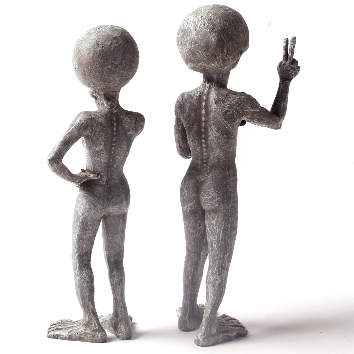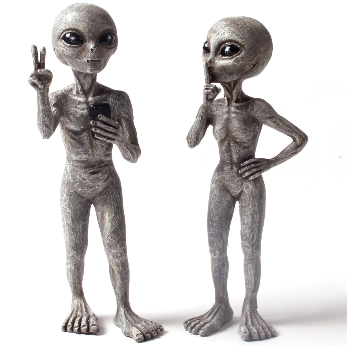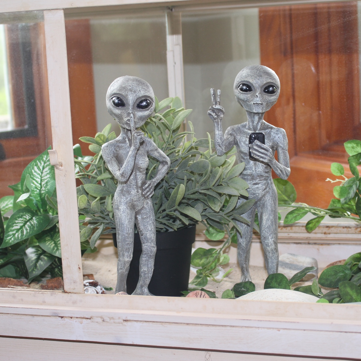 Alien Statues “Peace & Quiet” 10″ H Standing Extraterrestrial Figurine Set – Alien Gray