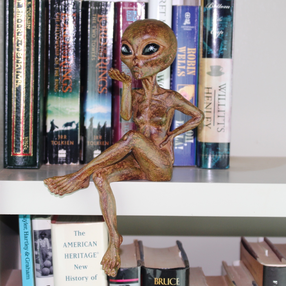 - Each piece is hand painted with Starlight Bronze distressed finish. Special attention is given to her ‘known’ features, especially those Alien eyes, large head and elongated extremities