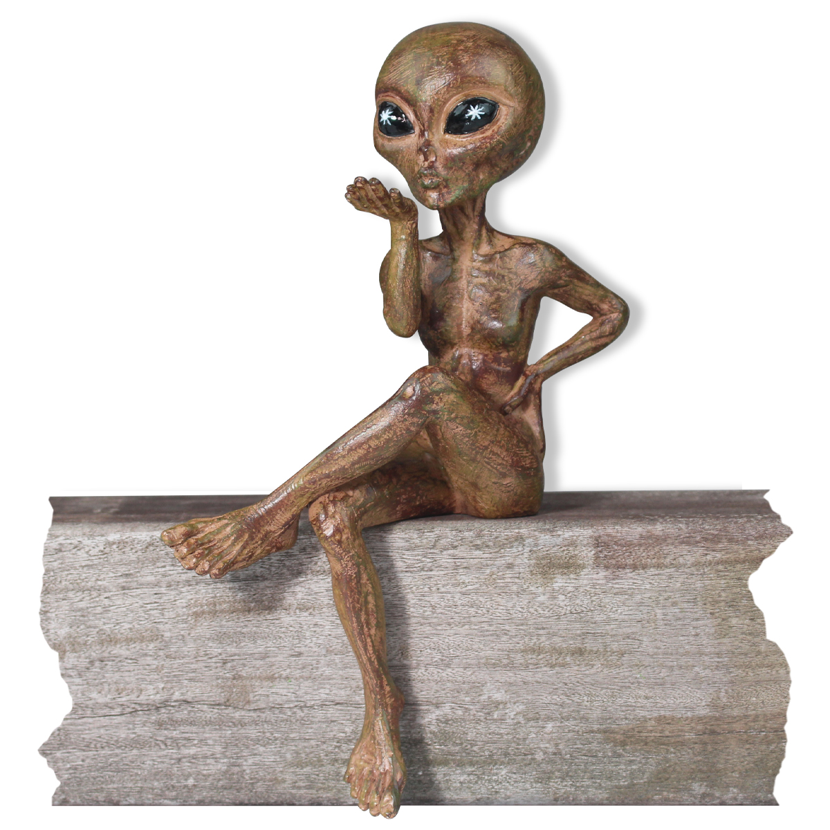 - Each Starlight Bronze Extraterrestrial figurine is 10″ tall and is crafted in a designer cold cast resin. Make her the talk of your Home, Garden or Patio Decor!