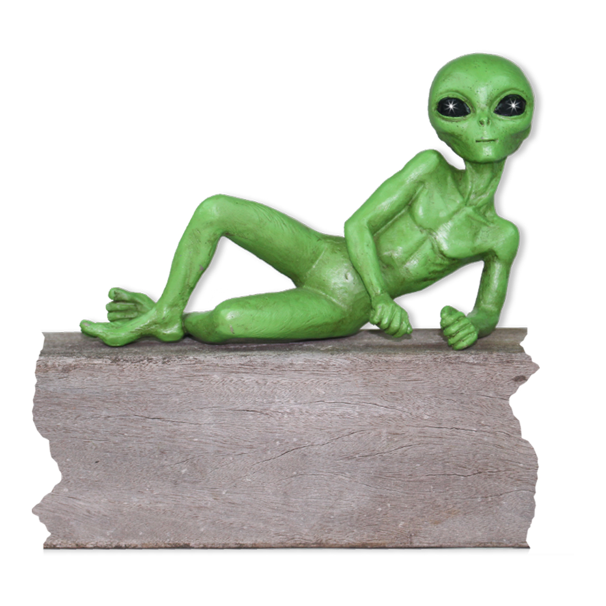 - Resin Alien Statue is hand painted in distressed Cosmic Green finish