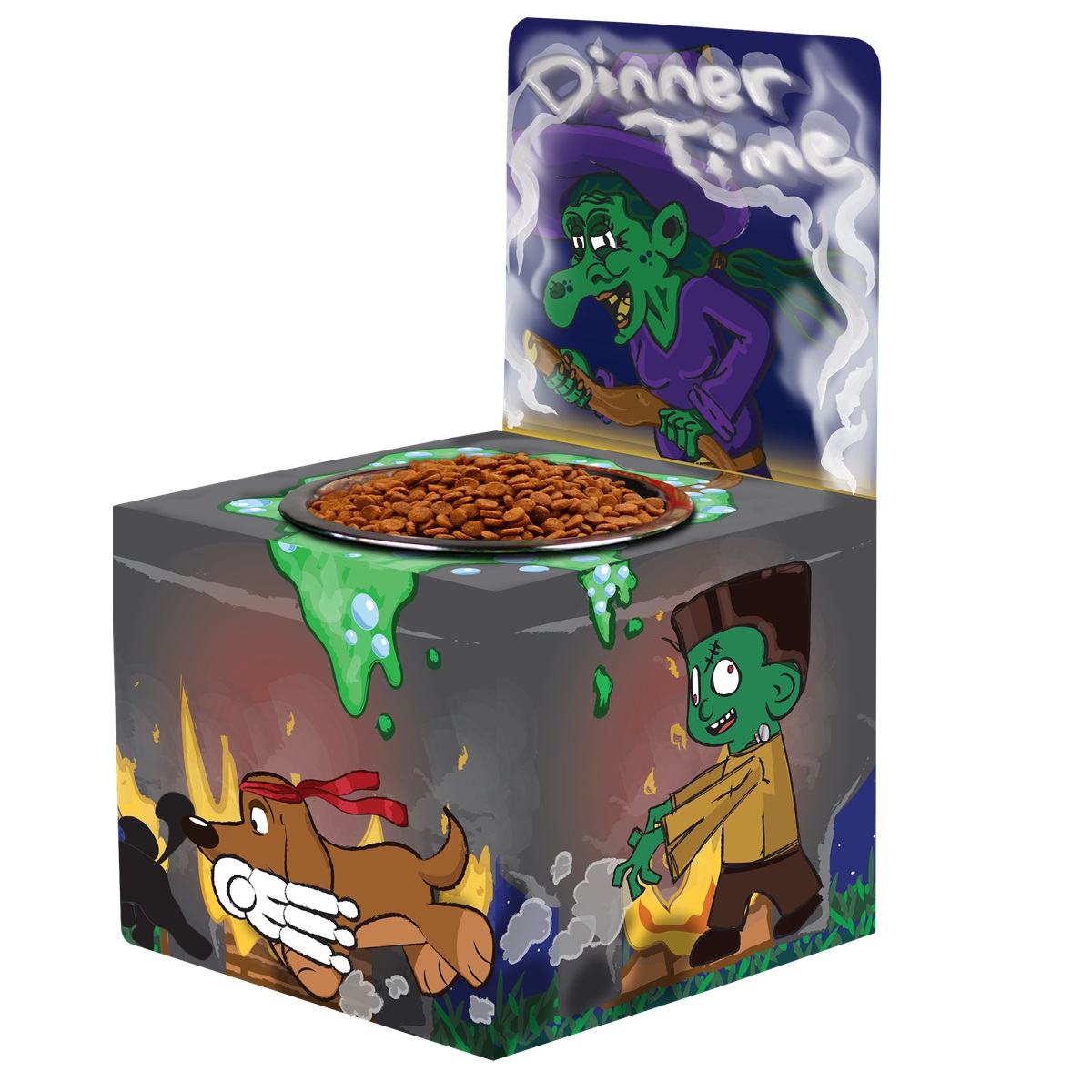 Halloween Elevated Raised Dog Feeder Stand Medium Dogs – Witches’ Brew “Dinner Time”
