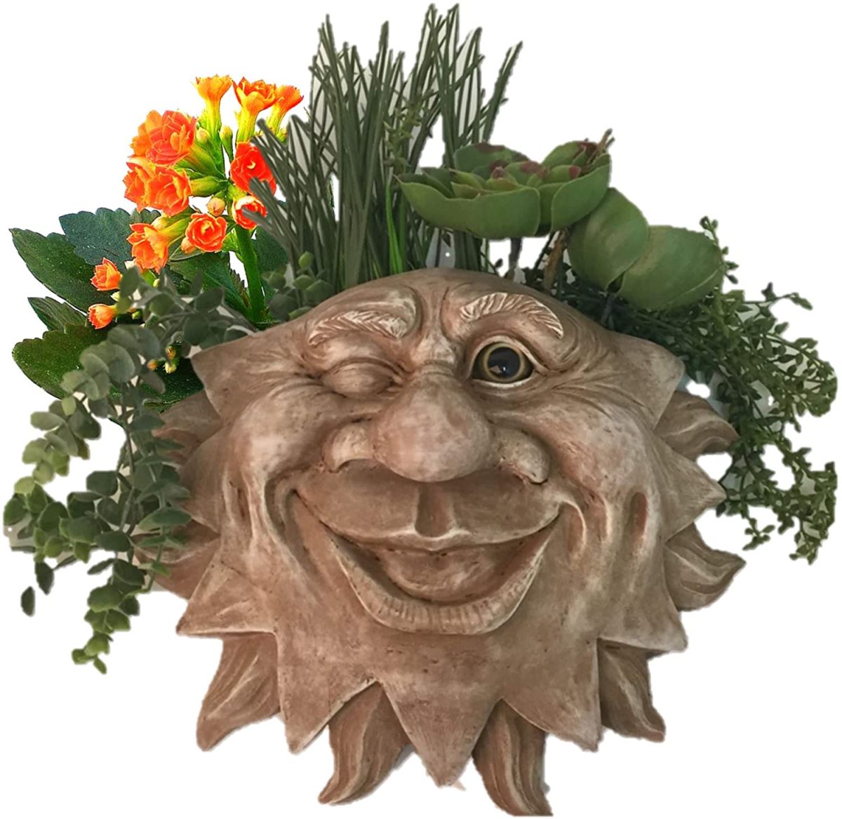 Mr. Sun Shine Face Tree & Patio 9″ W Wall Planter – Stone Wash”